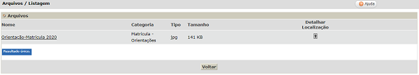 Nessa funcionalidade é possível também localizar os arquivos incluídos.