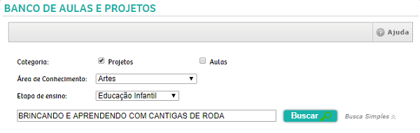 Buscar – Permite a pesquisa de planos de aulas e projetos. Ao entrar na tela, todos os planos de aulas e projetos cadastrados serão exibidos.