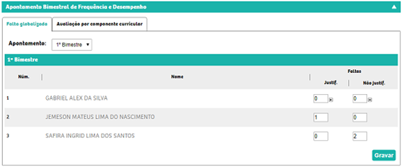Permite efetuar o apontamento total de faltas dos alunos por período.