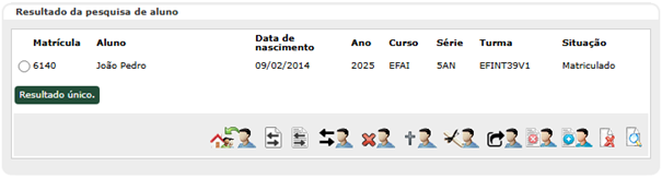 • Não é possível ativar matrícula de aluno registrado como 'Não frequente' na tela de matrícula. Sua situação deverá ser alterada em Registrar aluno não frequente.
