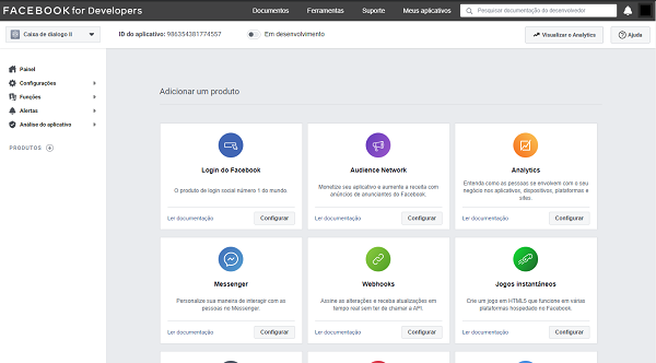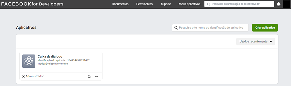 Abra a página do Facebook e faça login com o seu usuário. Acesse o Facebook Developers pelo link http://developers.facebook.com.