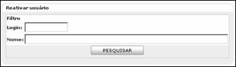 Caso o usuário apenas clique sobre o botão Pesquisar, sem informar nenhum critério, o sistema exibirá uma listagem com todos logins desativados.